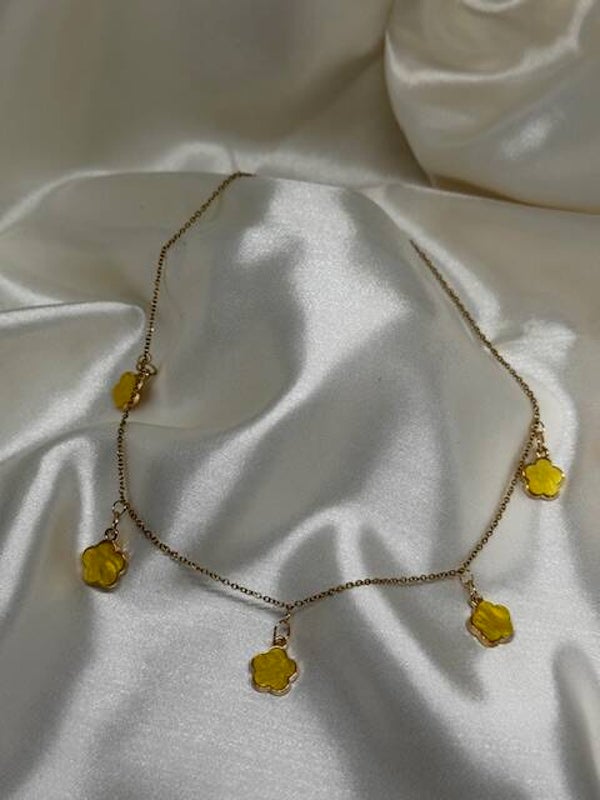 Unsere verspielte Blumen-Halskette bringt Farbe und Eleganz in deinen Look 🌸✨. Die filigrane goldene Kette ist mit mehreren zarten Blumenanhängern verziert, die wunderschön im Licht glänzen. Ideal für einen femininen, stilvollen Auftritt – ob im Alltag, auf Feiern oder als besonderes Geschenk.