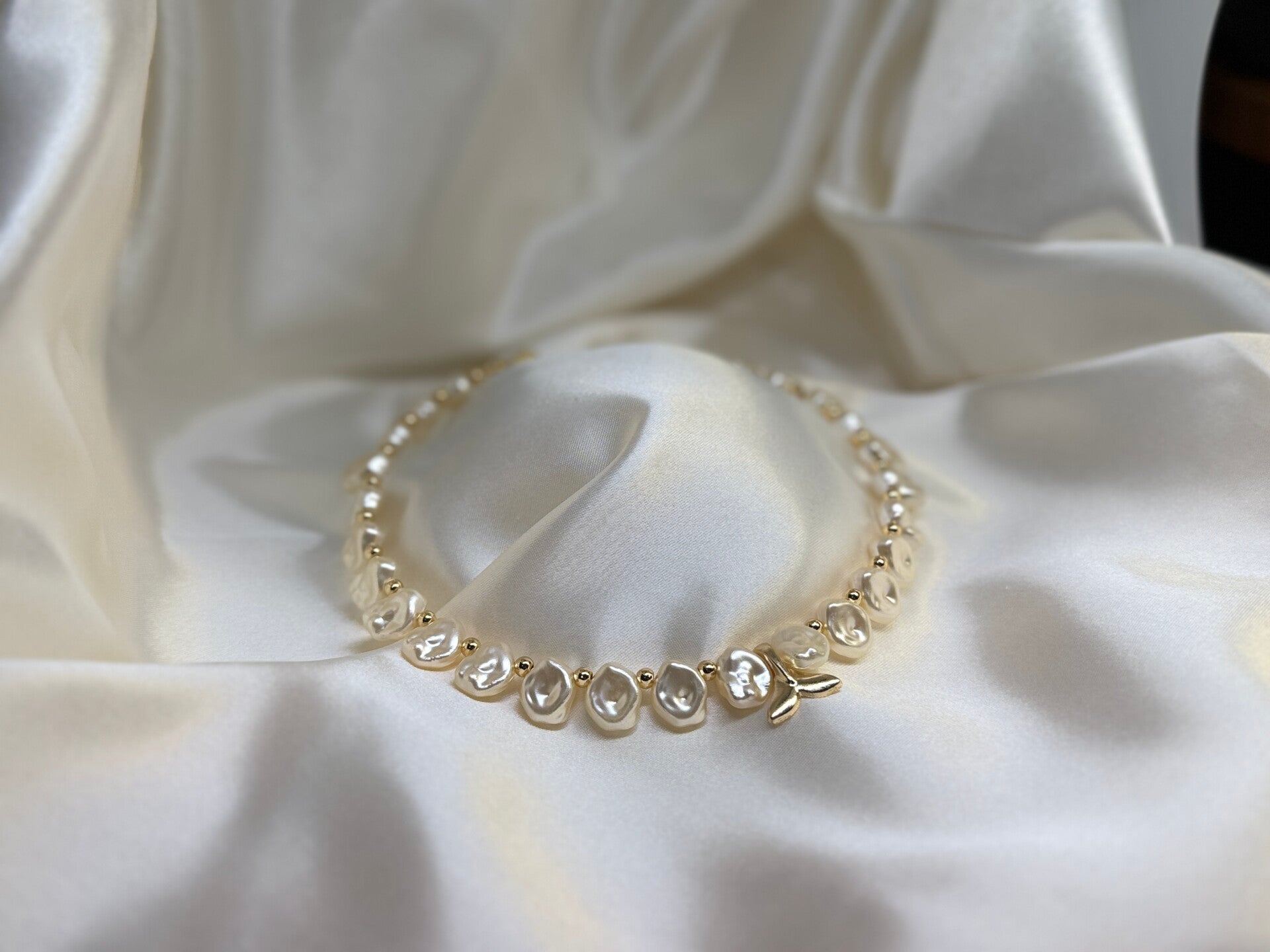Golden Whisper“ – handgefertigte Perlenkette, 14 K vergoldet